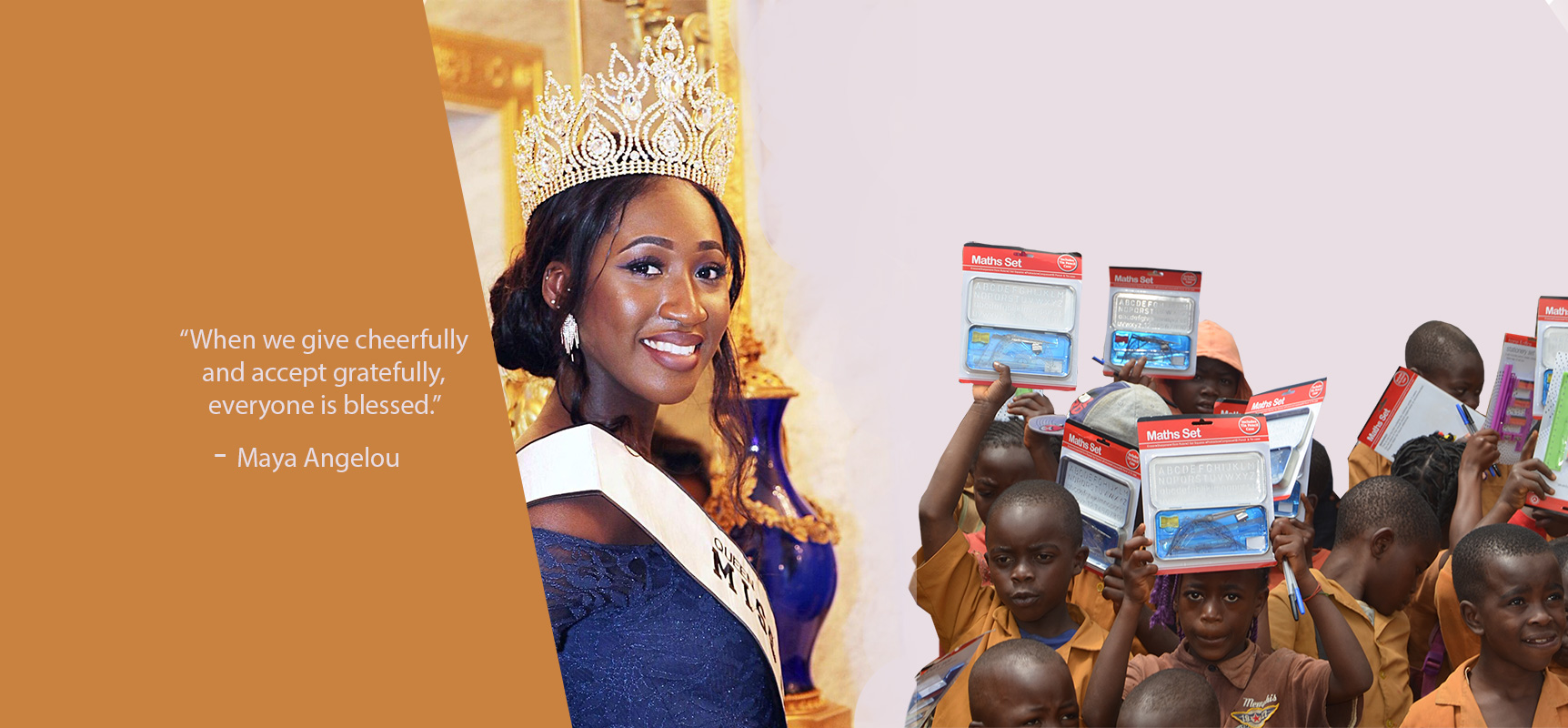 To raise future leaders and instill into them the culture of giving. Every queen, supported by the organisation travels to her home country on a charity mission.